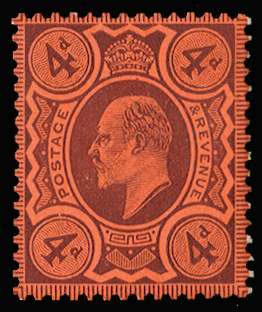 1909-10 4d Colour trial. Very fine unused o.g. example printed by DLR in purple on orange unwatermarked paper from the original bi-coloured plates. Rare and desirable.