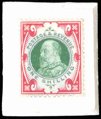 1901 1s Composite "Paste Up" essay of the Victorian "Jubilee" series. A spectacular Series "B" essay with a lithographed quarter face portrait of King Edward VII facing left, mounted on a stout white card tablet. A magnificent essay and exhibition piece, believed to be one of only two or three examples in private hands. Ex. Stothert.