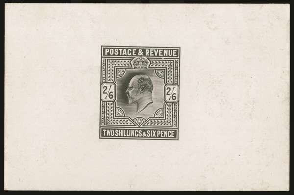 1901 2s6d Die proof. Very fine example printed in black on white glazed card (92 x 60mm). Very scarce. Ex. "Minoru".