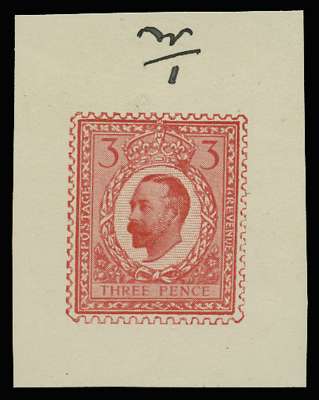 1910 3d "Hentschel" half tone essay. Very fine small format example produced by the Printex method in scarlet endorsed "W/1".