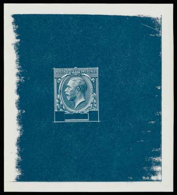 1912 1d & 2½d Master die proof (Stage 4b). Very fine example printed in deep turquoise-blue on white proof paper (72 x 80mm) showing largely completed design except for value tablets. Rare.