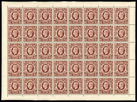1939-48 £1 brown complete sheet of forty, SG 478c