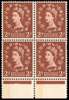 1959 2d light red-brown, one left phosphor band, ‘ERROR ST EDWARD’S COWN WATERMARK', lower marginal block of four. Fine unmounted mint. SG 605a