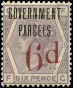 SG162var 1883 6d on 6d Lilac "Government Parcels" Essay