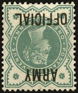 1900 ½d Dull blue green (Army Official, Wmk. Inverted). Very fine unused o.g. example of this very difficult watermark variety. Ex Michael Astley Collection.