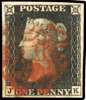 1840 1d black, Plate 4 (JK), good to large margins, cancelled by red Maltese Cross. SG 2