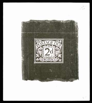 1914 2d Postage due die proof. Superb uncleared example printed in black on white glazed card (69 x 78mm) numbered "86"and "291" in upper and lower right hand corners. Very scarce