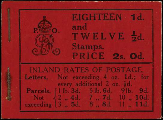 1912 2s0d Booklet (Die 1b, Wmk. Simple Cypher Edition No.13). Very fine and fresh example of this difficult early George V booklet.