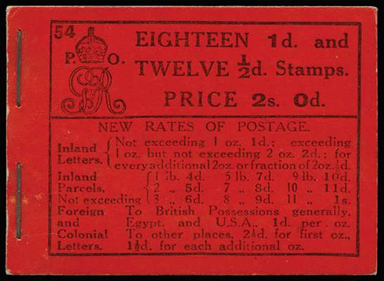 1916 2s Booklet (Edition No.54). Exceptionally fine and fresh example of this difficult early George V booklet. Very scarce so fine.