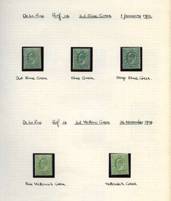 1902-11 Edward VII shades mint collection from ½d to 7d, neatly written up and identified (many with accompanying RPS certs ) in an album, we note: ½d Bright green (fine impression), ½d Deep bright green and ½d Deep dull green (very blotchy print), 1d intense rose-red (2) and 1d aniline rose, 4d brown orange, 6d Royal purple, and 7d deep slate grey and small sampling of Officials and Controls, very fine condition with vast majority unmounted, unless noted by the original collector, a lot for the specialist.
