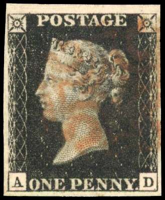 1840 1d black, Plate 5 (AD), good to very large margins, cancelled by light red Maltese Cross. SG 2
