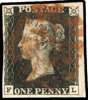 GB: 1840 1d black, Plate 6 (FL) four margins, large margin at right, red MC SG 2