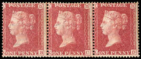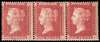 Great Britain 1857 1d Rose red Pl.47 (Provisional perf. 16). Very fine and fresh unused o.g. strip of three letter…