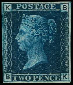Great Britain 1858 2d Blue Pl.7. Superb imperforate four margin imprimatur lettered BK, very rare one of only 22 p…