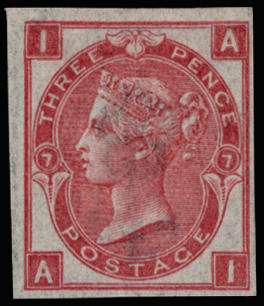 Great Britain 1871 3d Rose Pl.7. Very fine unused o.g. imperforate imprimatur lettered AI. Very rare, one of only …
