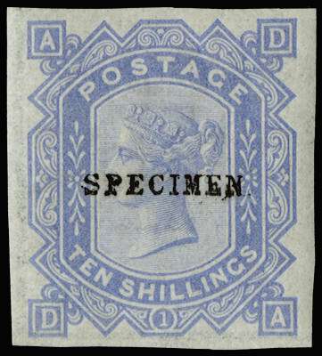 Great Britain 1878 10s Colour trial Pl.1. Very fine imperforate example lettered DA printed on gummed watermarked …