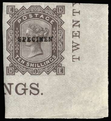 Great Britain 1878 10s Colour trial Pl.1. Very fine imperforate corner marginal example lettered DE printed on gum…