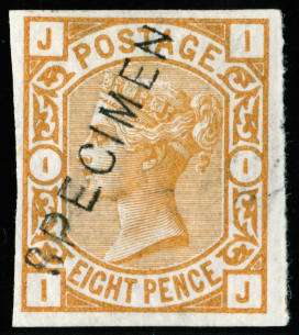 Great Britain 1876 8d Colour trial Pl.1. Very fine unused o.g. imperforate example lettered IJ, printed in brown-o…