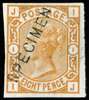 1876 8d Colour trial Pl.1. Very fine unused o.g. imperforate example lettered IJ, printed in brown-orange overprinted "SPECIMEN" type 11. Scarce.