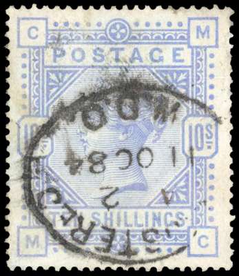 1884 10s Cobalt on blued paper (SG177a).