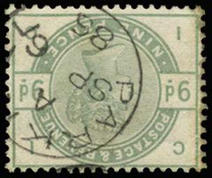 Great Britain 1883 9d Dull green (Wmk. Inverted). Very fine used well centered example lettered IC, neatly cancell…