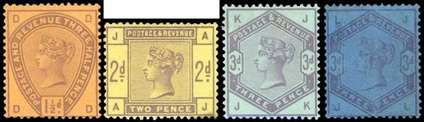 Great Britain 1883-84 Lilac & Green colour trials on tinted paper SG 188-191var