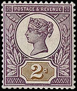 1899 2d "Jubilee" colour trial. Exceptionally fine and fresh example with the head plate printed in purple and duty plate in brown, printed on gummed unwatermarked paper. Scarce.. Ex "Verus".