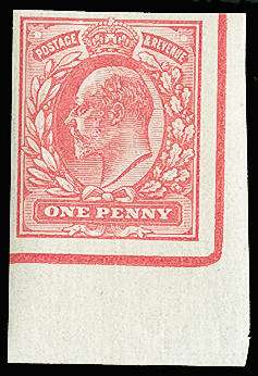 1906 1d Colour trial. Very fine unused bottom right hand corner marginal imperforate example printed in carmine-rose on gummed, Crown watermarked paper. Made from a special plate of 20 electros. Scarce. Ex. "Minoru".