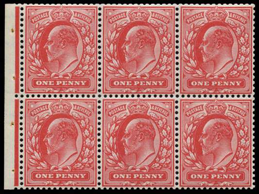 Great Britain 1904 1d Scarlet (Wmk. Inverted). Superb unmounted o.g. booklet pane of six printed by DLR. Exception…