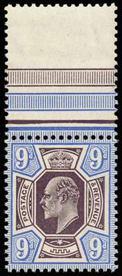 Great Britain 1905 9d Slate purple & ultramarine (C). Very fine unmounted o.g. top interpanneau marginal example p…