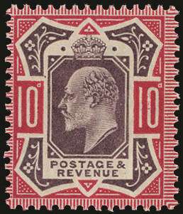Great Britain 1902 10d Slate-purple and carmine (O). Very fine unmounted o.g. example printed by DLR. Spec M42(2).…