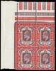 1911 10d Dull purple and scarlet. Very fine unmounted o.g. top left hand corner marginal block of four printed at Somerset House. Attractive multiple, lovely fresh colour and gum. Spec. M44(3).