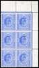 1911 10/- deep blue, top right hand marginal block of six, brilliant unmounted o.g. a few minor gum wrinkles, still an impressive and very rare block. SG 319 £12,000+