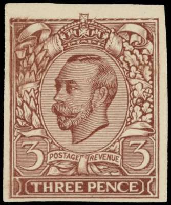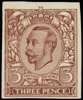 1911 Engraver's sketch of the unissued 3d value as cut-down die proof on thick white wove, in pale red-brown, using the Die 2 head with shaded background to head and upper corners, very rare. See Specialised Vol.2 catalogue pg. 79 fig. 23.