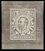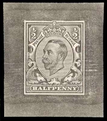 1911 ½d Downey Head die 2 die proof (Stage 2). Very fine uncleared example printed in grey-black on thin white glazed card (32 x 36mm). Extremely rare, believed to be unique in private hands.