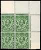 1912 ½d Myrtle green (Die 2, Wmk. Crown). Very fine unused o.g. top right hand corner marginal block