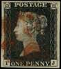 GB 1840 1d black, plate 1b (FJ), good to large margins, used with watermark inverted