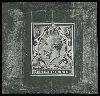1912 ½d Green die proof. Very fine uncleared example printed in black on white glazed card (44 x 40mm). A rare die proof.