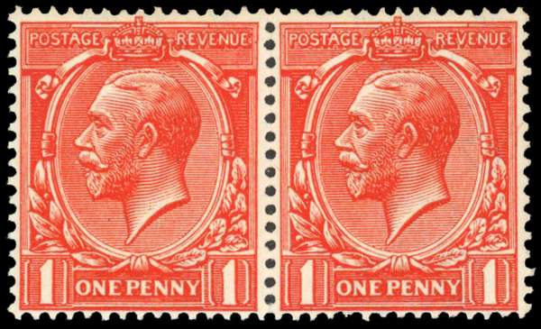 1912 1d Orange-vermilion (Wmk. Royal Cypher). Unmounted o.g. horizontal pair.