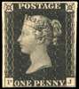 1840 1d black, plate 1B (PJ) showing retouched check letters, close to large margins, full original gum