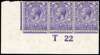 1922 3d Very deep violet. Unused o.g. bottom left hand corner marginal T22 control strip of three.