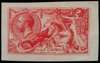 1913 2s6d "Seahorse" plate proof. Very fine huge four margin imperforate example in red on thin plate glazed paper without watermark or gum. Stunning colour and very rare.