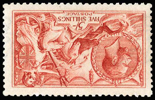 Great Britain 1915 5s Bright carmine (Wmk. Inverted). Very fine and fresh well centred unused o.g. example, lightl…
