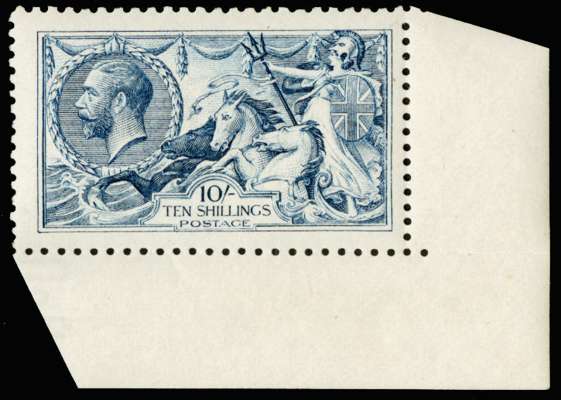 Great Britain 1915 10s Blue. Superb well centered unmounted o.g. corner marginal example printed by DLR, lovely br…