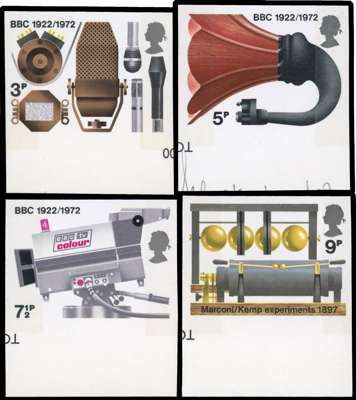 1972 Broadcasting Anniversaries set lower marginal imperforate imprimaturs, with ‘BPMA’ h/s on reverse, unmounted o.g. fine and scarce. SG 909-912var
