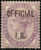 1882 1d Lilac (I.R. Official). Very fine unused small part o.g. overprint essay (Type A) with the lines of overprint transposed compared to the issued stamp and in a slightly lighter type face. Very rare only three or four examples recorded. Ex Michael Astley Collection.