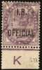 1882 1d Lilac (I.R. Official). Very fine used bottom marginal control "K" example, Perf type P cancelled by an Epsom "280" duplex. Spec. L3. Ex Michael Astley Collection.