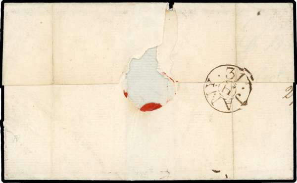 1787 pre-stamp, fine wrapper sent from Ruthin to London bearing a ‘RUTHIN’ handstamp at top and endorsed ‘6’ at left. Showing a crisp strike in black of the short-lived experimental cds JANy 31. (Type L4a, code H, scarcity G) last day of usage. Light filing crease through mark, torn flap from seal removal. Rare.