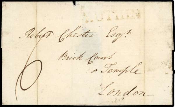 1787 pre-stamp wrapper sent from Ruthin to London