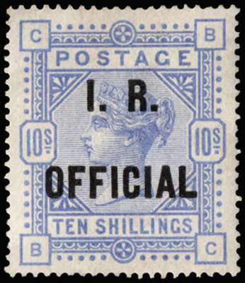 Great Britain 1885 10s Cobalt (White paper, I.R. Official). Very fine and fresh unused o.g. example of this rare d…